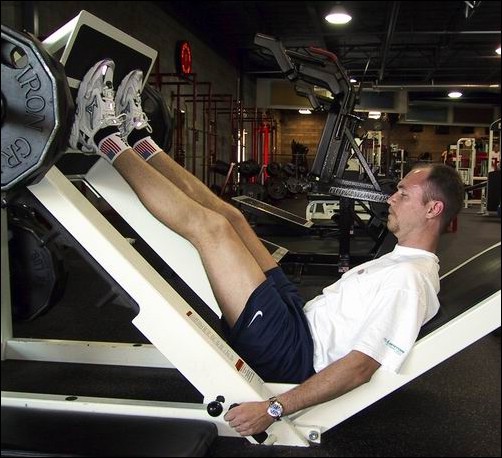 300lbs. Strengthens quadriceps, gluts, and hamstrings. This is the most important cycling related exercise. It's not important to lift max weight, but to do a pyrmid structure to fatigue which emulates cycling effort. |