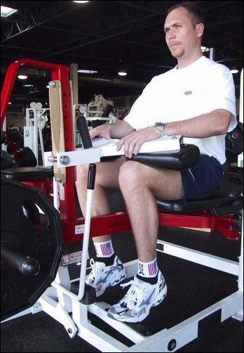 5. Seated Calf Raise - (3) sets of 15-20 reps to 200lbs. Strengthens calf muscles. This works the calf muscles a little different than the previous. I found the standing Calf Raise (previous) to help my cycling muscles more effectively as it worked my exact cycling motion, but the Seated Calf Raise helped to stretch and strengthen my achilles tendons |