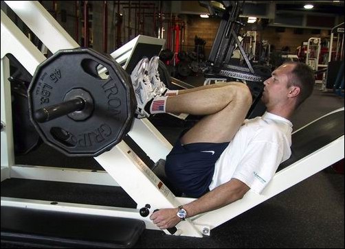 300lbs. Strengthens quadriceps, gluts, and hamstrings. This is the most important cycling related exercise. It's not important to lift max weight, but to do a pyrmid structure to fatigue which emulates cycling effort. |