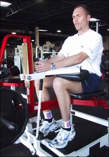 5. Seated Calf Raise - (3) sets of 15-20 reps to 200lbs. Strengthens calf muscles. This works the calf muscles a little different than the previous. I found the standing Calf Raise (previous) to help my cycling muscles more effectively as it worked my exact cycling motion, but the Seated Calf Raise helped to stretch and strengthen my achilles tendons |